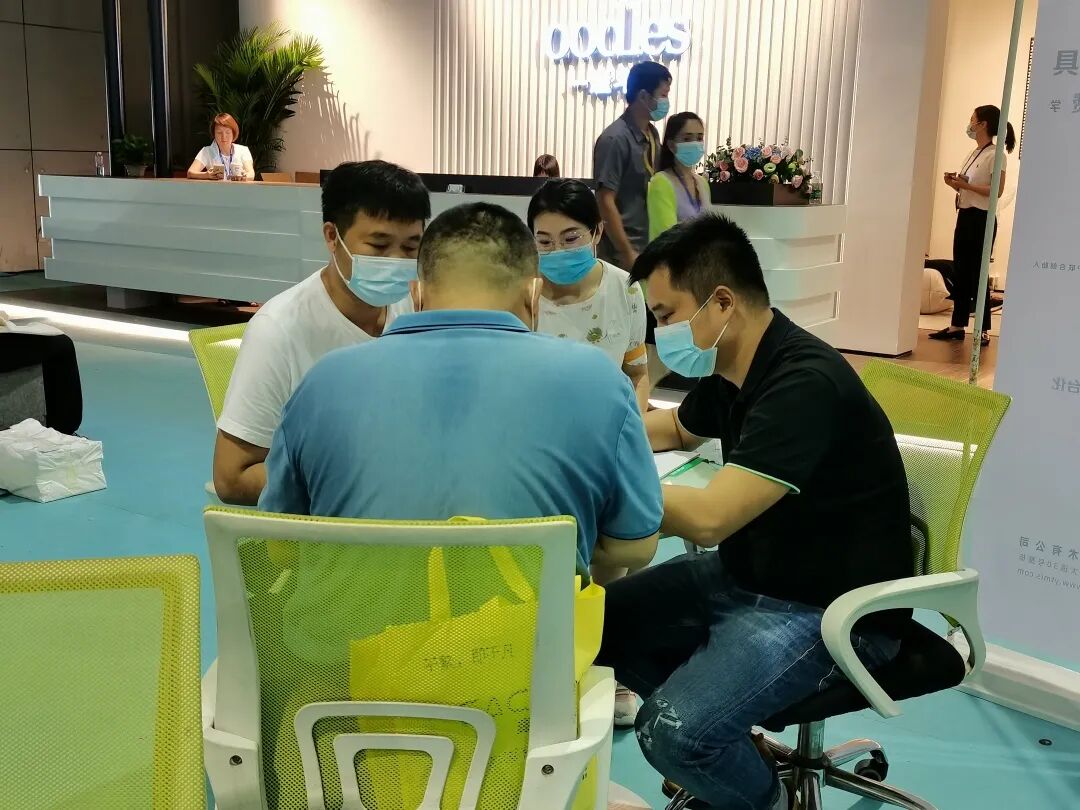 在整个展会中,相比于家居卖场人流涌动,来到电上店下的人们更愿意坐下来,与我们的业务员交谈,聆听现今家居行业的变化与 趋势,以及如何通过渠道裂变去拓客,进行线上营销,线上线下两端打通。帮助他们对外拓充业绩,对内管理,实现资源的有效利用,使之成本大幅度降低。